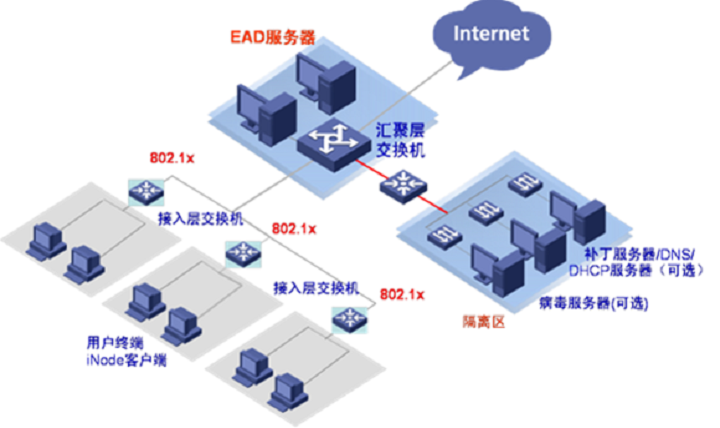 簡介:對于要接入安全網(wǎng)絡(luò)的用戶,EAD解決方案首先要對其進(jìn)行身份認(rèn)證,通過身份認(rèn)證的用戶進(jìn)行終端的安全認(rèn)證,根據(jù)網(wǎng)絡(luò)管理員定制的安全策略進(jìn)行包括病毒庫更新情況、系統(tǒng)補(bǔ)丁安裝情況、軟件的黑白名單、U盤外設(shè)使用情況、軟硬件資產(chǎn)信息等內(nèi)容的安全檢查,根據(jù)檢查的結(jié)果,EAD對用戶網(wǎng)絡(luò)準(zhǔn)入進(jìn)行授權(quán)和控制。通過安全認(rèn)證后,用戶可以正常使用網(wǎng)絡(luò),與此同時,EAD可以對用戶終端運(yùn)行情況和網(wǎng)絡(luò)使用情況進(jìn)行審計和監(jiān)控。